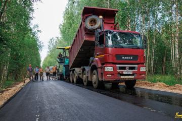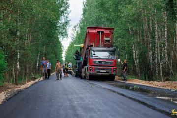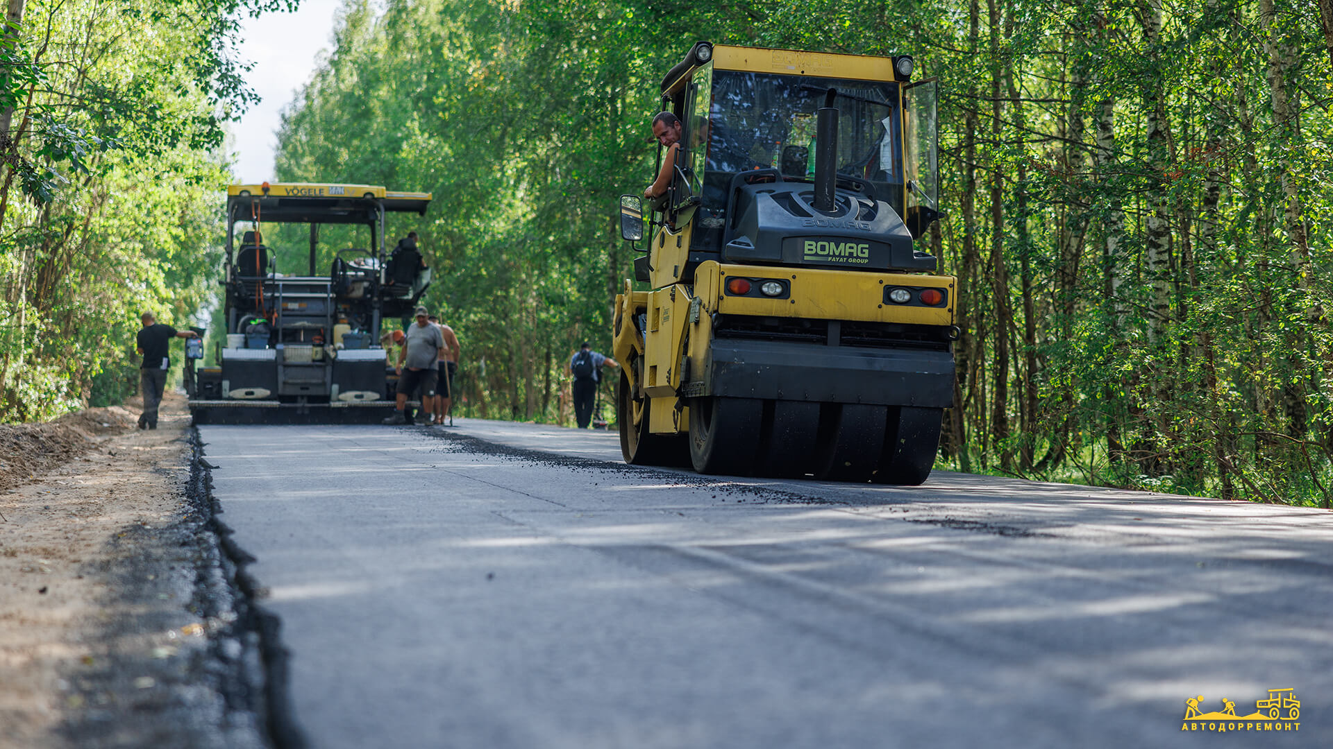 Учитывая назначение дороги, инженеры компании «Автодорремонт» применили двухслойную схему асфальтирования, которая обеспечивает необходимую жесткость и износостойкость.