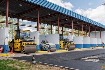 На момент начала работ асфальтобетонное покрытие заправочной станции находилось в критическом состоянии. Из-за высокой эксплуатационной нагрузки на полотне образовались дефекты, затруднявшие движение транспорта. Требовалось не просто обновить верхний слой, а провести полноценный ремонт с заменой бортового камня.