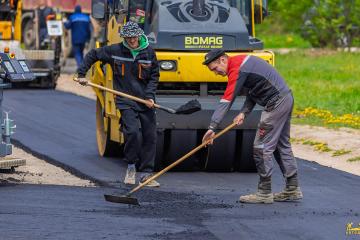Асфальтирование: уложили слой асфальтобетона ЩМБг 20 II/2.3 толщиной 6 см.