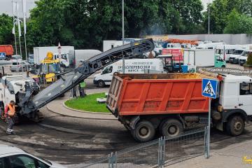 Подготовка: фрезерование старого асфальта и высотная регулировка горловин колодцев.