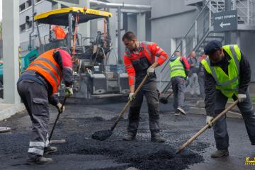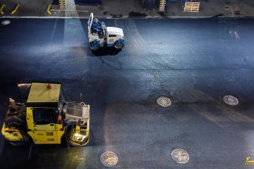 Асфальтирование: устройство верхнего слоя из износостойкого асфальтобетона ЩМАг-I толщиной 6 см.