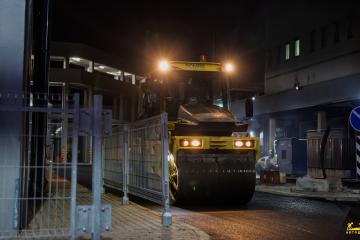 Работы велись в стесненных условиях при сохранении действующих логистических связей. Чтобы избежать дискомфорта для гостей и не перекрывать парковку полностью, основной этап укладки выполнялся в ночное время.
