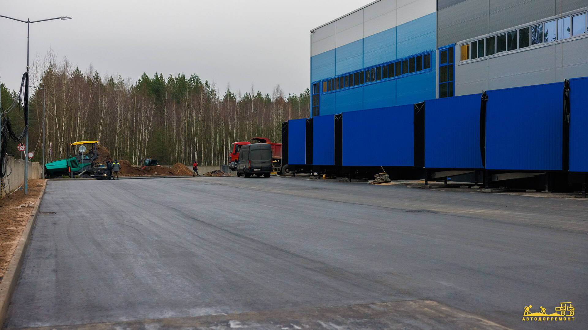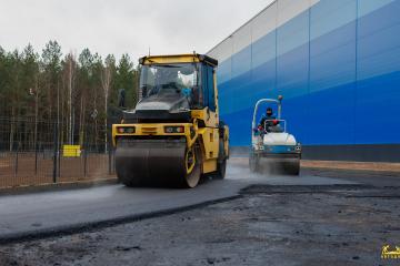 Асфальтобетонное покрытие:Для высоких производственных нагрузок уложено двухслойное покрытие общей площадью 8900 м2: