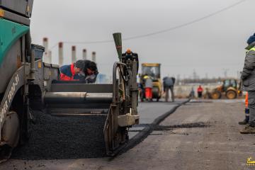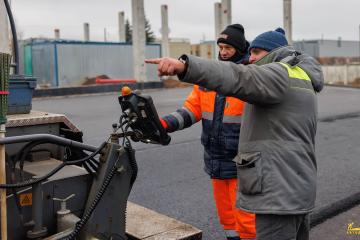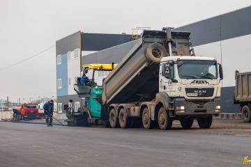 Асфальтирование:Произведено устройство мощного двухслойного асфальтобетонного покрытия общей толщиной 11 см. Такая толщина гарантирует устойчивость проездов и стоянок к нагрузкам от тяжелой спецтехники.