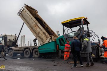 Разрушенное старое покрытие, затруднявшее движение транспорта.