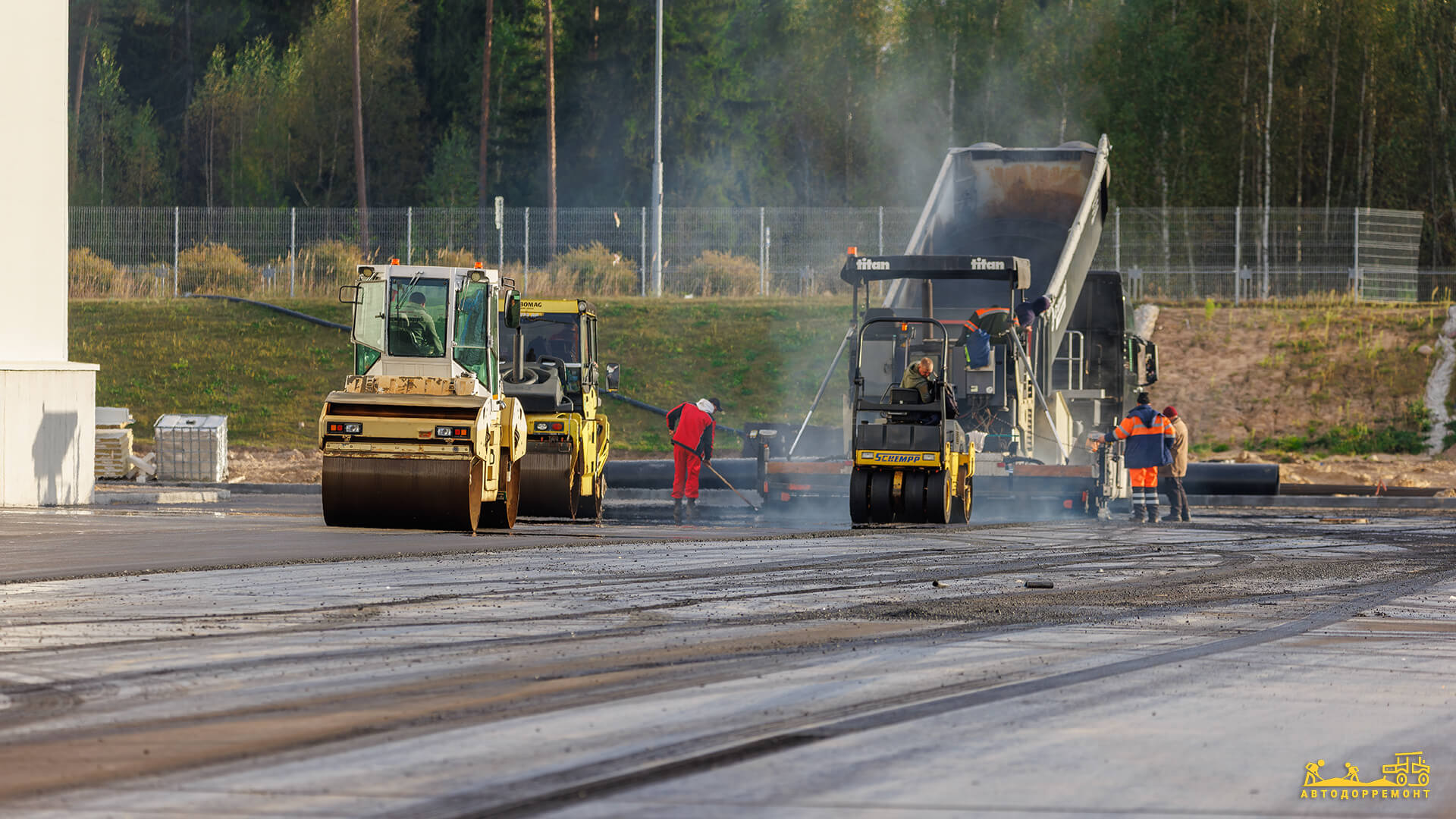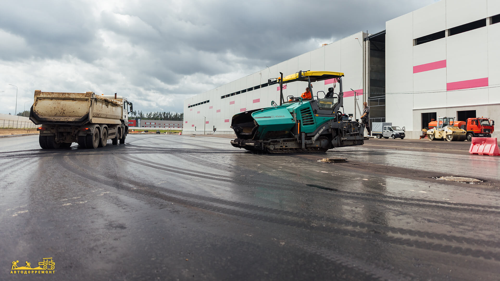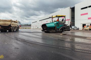 Главной сложностью был масштаб: на огромных площадях парковок и маневровых зон для фур необходимо было обеспечить бесстыковое сплошное покрытие. Любой слабый шов в будущем может стать местом разрушения под колесами большегрузов, поэтому мы уделили особое внимание технологии укладки и графику подачи смеси.