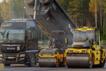 Для обеспечения долговечности (прогнозный срок службы до 24 лет) была выбрана многослойная структура дорожной одежды. Мы использовали специализированные марки асфальтобетона, соответствующие высоким нагрузкам: