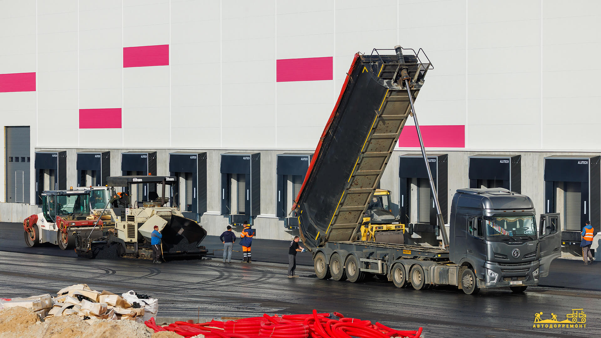 Перед нами стояла задача организовать надежное покрытие для логистического хаба, способное выдерживать постоянные нагрузки от тяжеловесного грузового транспорта.