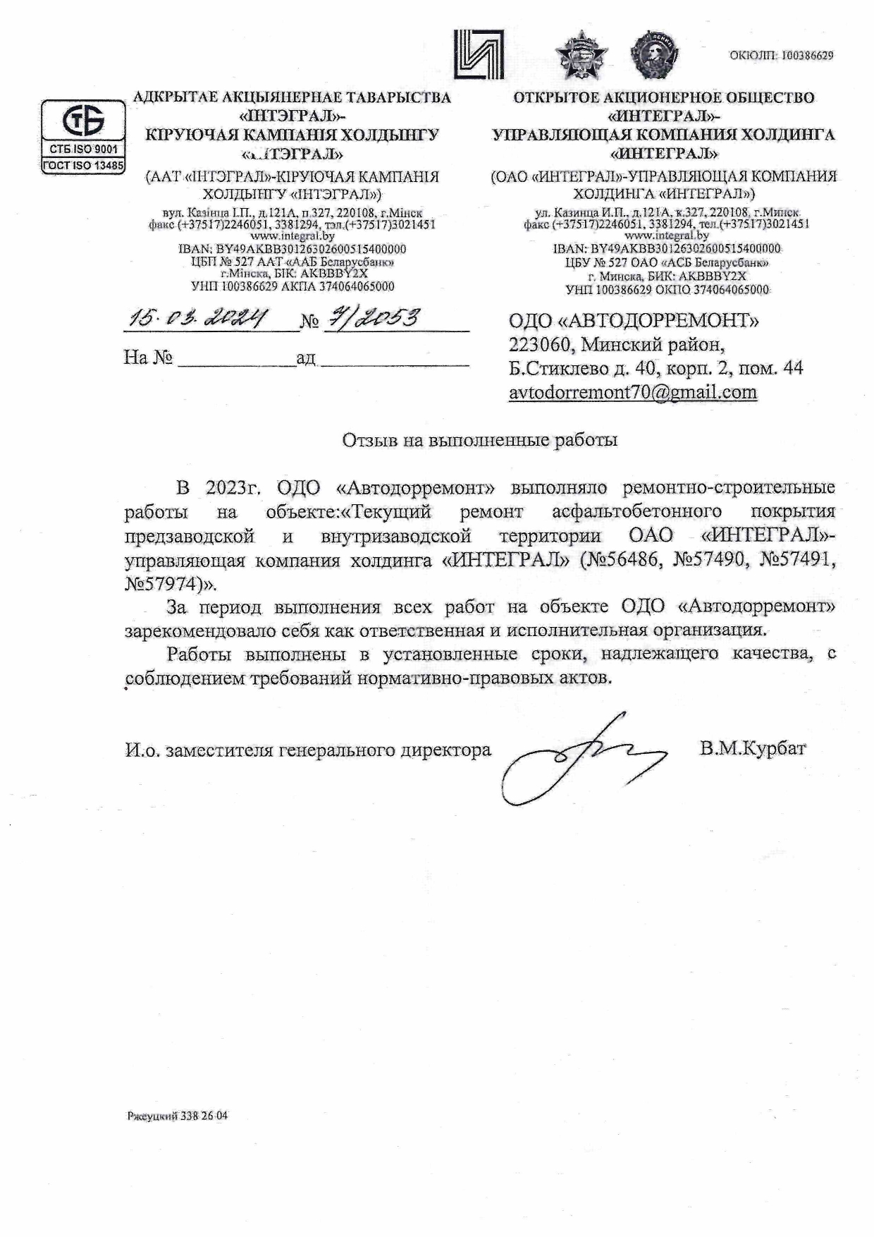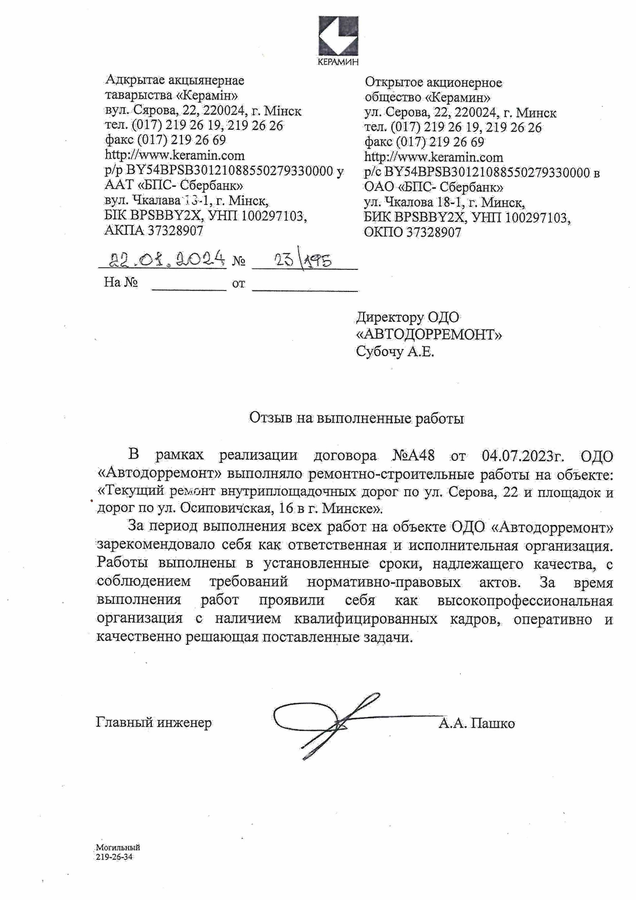 Ауди-Центр Минск ООО "ЭЙС-МОТОРС" ЧСУП "ИМО" ОАО "Планар" ИООО "РН-Запад" ЗАО "БелАсептика" ОАО «ММЗ имени СИ Вавилова управляющая компания холдинга «БелОМО» Типография Здравушка-милк ЖКХ Фрунзенского района ЖКХ города Жодино Алютех Безопасные дороги Беларуси Евроторг (Евроопт) Горремавтодор Гранд-Сервис УСВС РБ Управление спорта и туризма Военная академия РБ УП ЖРЭО Московского района УП ЖРЭО Партизанского района Агроимпортзапчасть Базтьюб ИНТЕГРАЛ Керамин ООО "КераниксТрейд" ОАО "Лесохимик" Логойский районный исполнительный комитет Логойский комхоз УО "Белорусский государственный медицинский университет" УП "МИНСКВОДОКАНАЛ" МЧС ООО "Простормаркет Плюс" ООО "ТехноНИКОЛЬ" Типография Федерации профсоюзов Беларуси